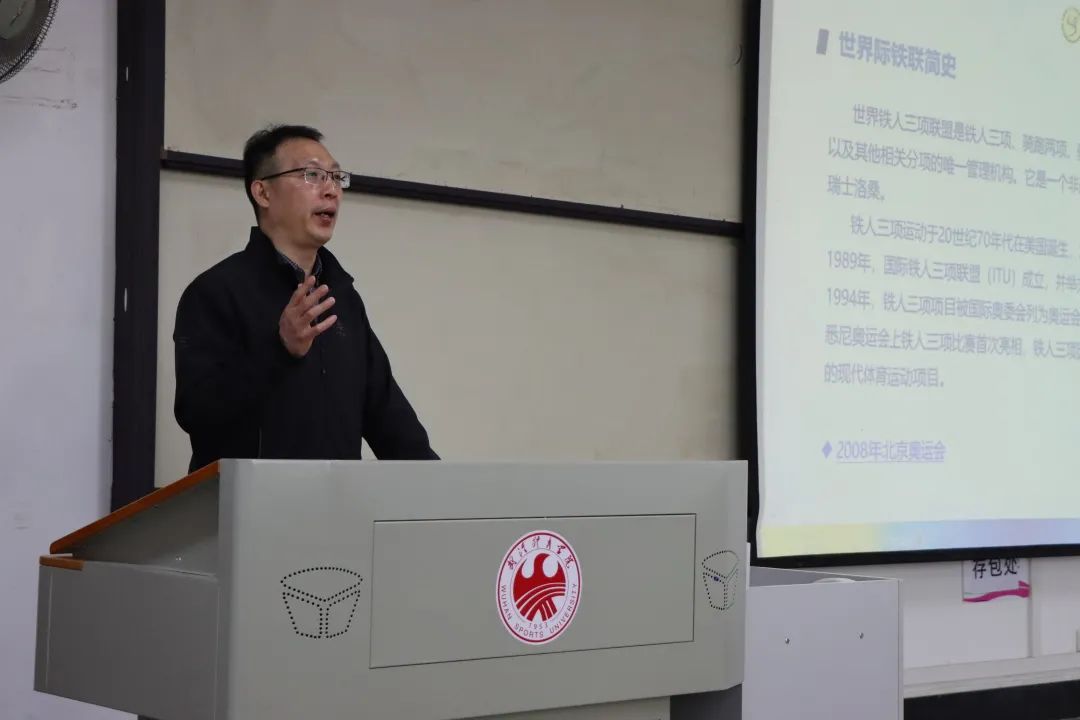 2021年4月27日,我院邀请武汉体育学院王志强副校长,为全体视觉传达专业同学讲授关于中国铁人三项运动的相关知识。