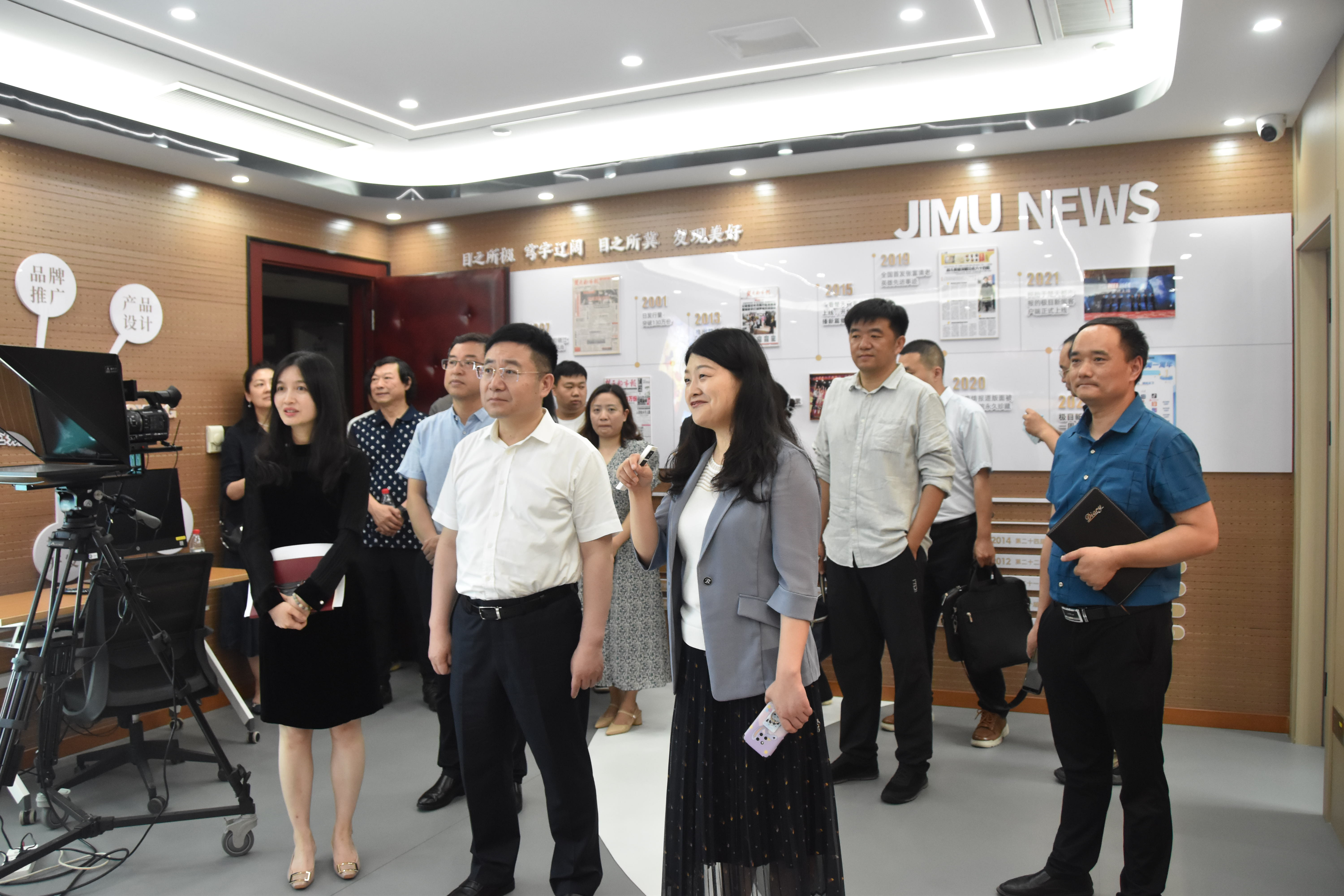 而后,大家共同参观了楚天都市报•极目新闻的演播厅,湖北日报传媒集团党委委员、副总编辑周芳详细讲解了极目新闻的生产流程,她从极目新闻的发展历史、媒体定位、品牌推广、产品设计、整合营销等角度对其运营发展模式进行介绍,“目之所极,穹宇辽阔;目之所冀,发现美好”,此之谓“极目”,极目新闻秉承“全球眼、中国心、瞭望者、思想家”的理念推送全球热点资讯、报道焦点事件,力求打造全国一流新媒体平台。