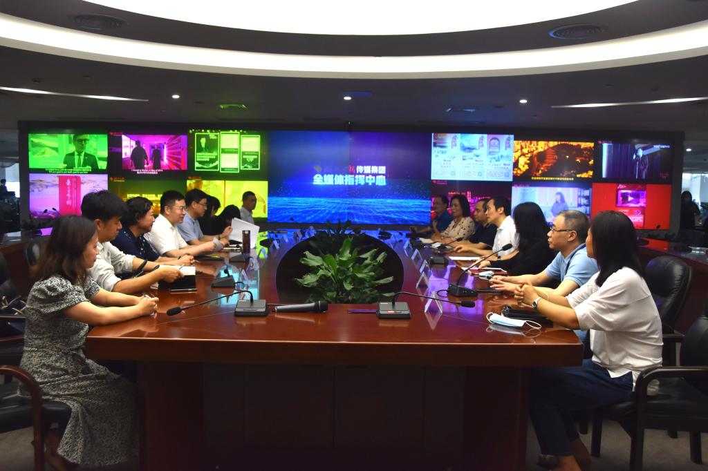 5月30日下午,武汉体育学院党委书记陈继平,党委常委、副校长刘彦博考察湖北日报传媒集团全媒体指挥中心,并与湖北日报传媒集团党委书记、社长、董事长陈剑文亲切会面交流媒体融合发展现状,共建实习实训基地。新闻传播学院、艺术学院班子成员和教师代表陪同考察。