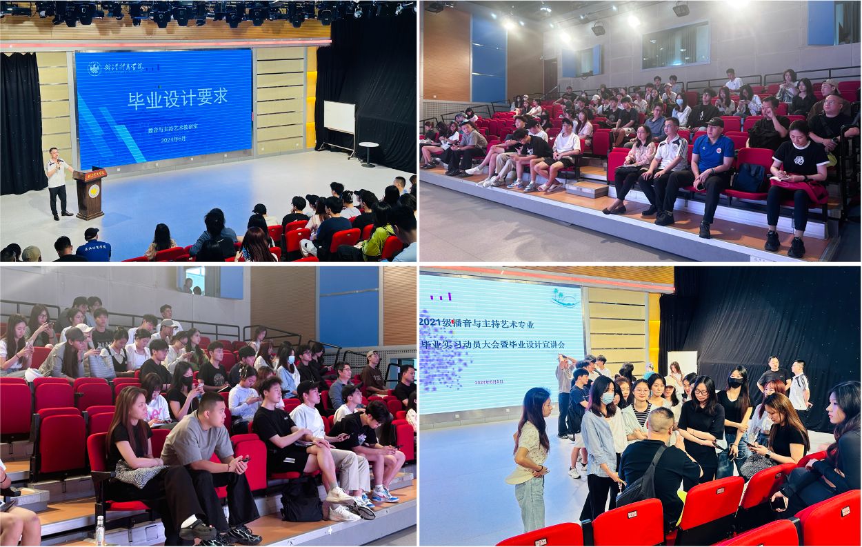 6月5日下午,播音与主持艺术教研室在融媒体中心演播厅成功举办,2021级实习动员大会暨毕业设计宣讲会。教研室党支部书记肖宁、主任吕永峰和全体教师出席会议,会议由教学秘书陈强主持。