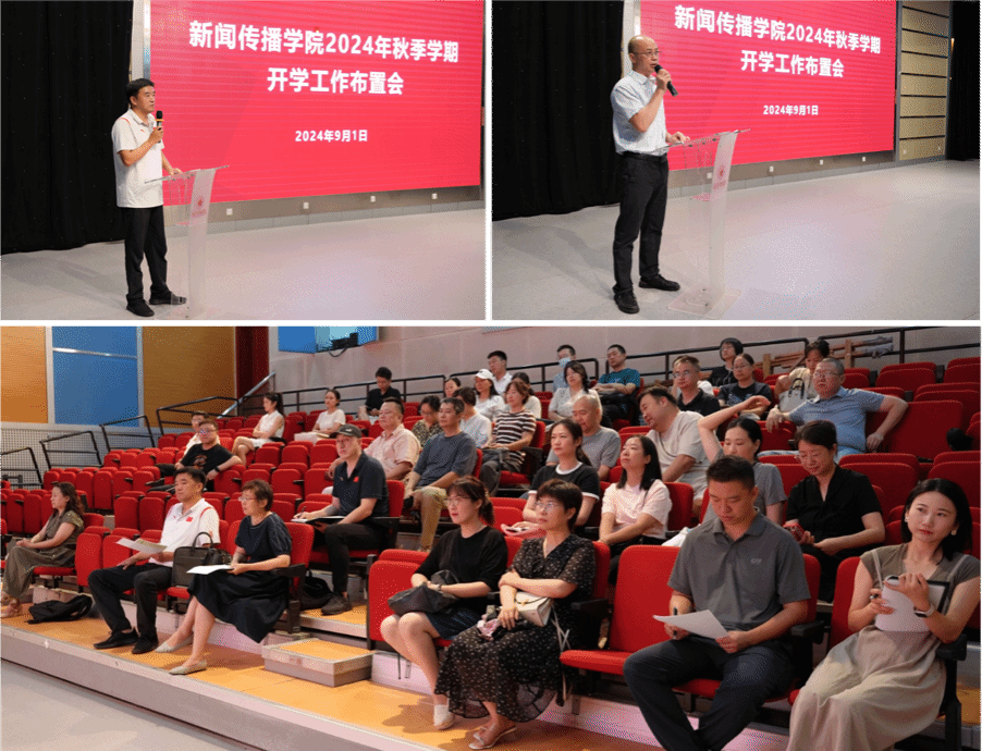 9月1日上午,新闻传播学院在科技楼融媒体中心演播厅召开2024年秋季学期开学工作布置会,传达学校新学期工作会议精神,部署学院新学期重点工作。学院领导班子成员及全体教职工参加会议,会议由党委书记叶涛主持。