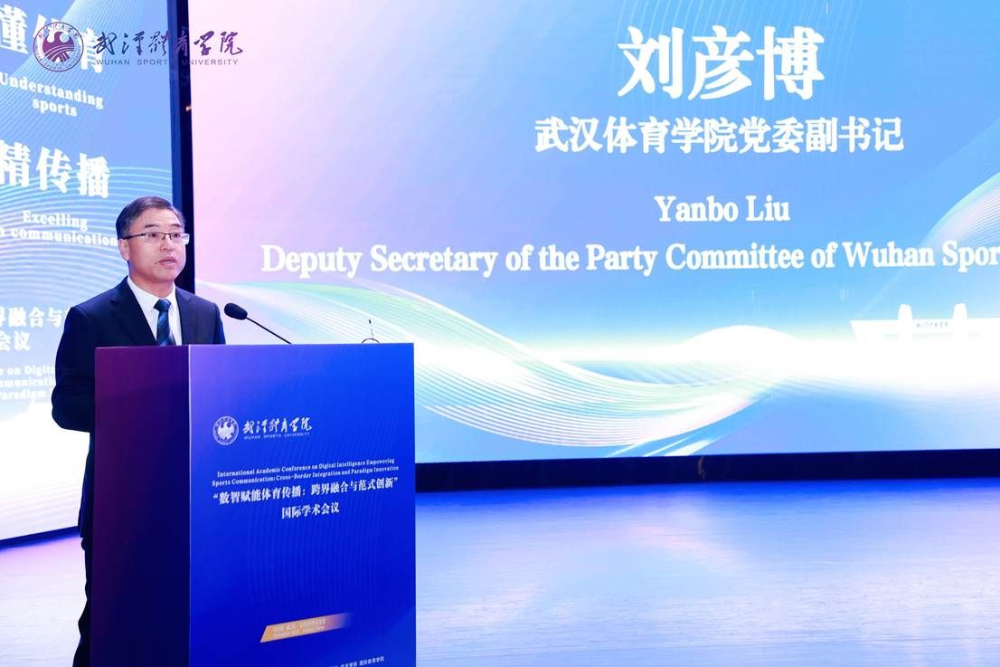 武汉体育学院党委副书记刘彦博在开幕式致辞。他指出,当前,在全国上下深入学习贯彻党的二十届四中全会精神、决胜“十四五”收官、谋划“十五五”蓝图的关键节点,我们以体育为媒、以数智为桥,相聚这座满载冠军荣光的体育学府。作为扎根荆楚、辐射全国的体育高等学府,武汉体育学院建校72年来既是冠军的摇篮,更是体育传播创新的沃土,构建起“大体育为主体、大健康与大传播为两翼”的学科体系,形成了独具特色的“体媒融合”发展生态。武汉体育学院新闻传播教育始于2001年,现有新闻传播学硕士学位授权点、体育新闻传播二级学科博士授权点,以体育强国、健康中国战略为导向,形成了智能体育传播、体育国际传播、体育文化传播等领域的重大研究成果,助力湖北加快建成中部地区崛起的重要战略支点。在这样的背景下,汇聚全球智慧,共商发展大计,正是以学术创新助力体育强国、数字中国建设的生动诠释。