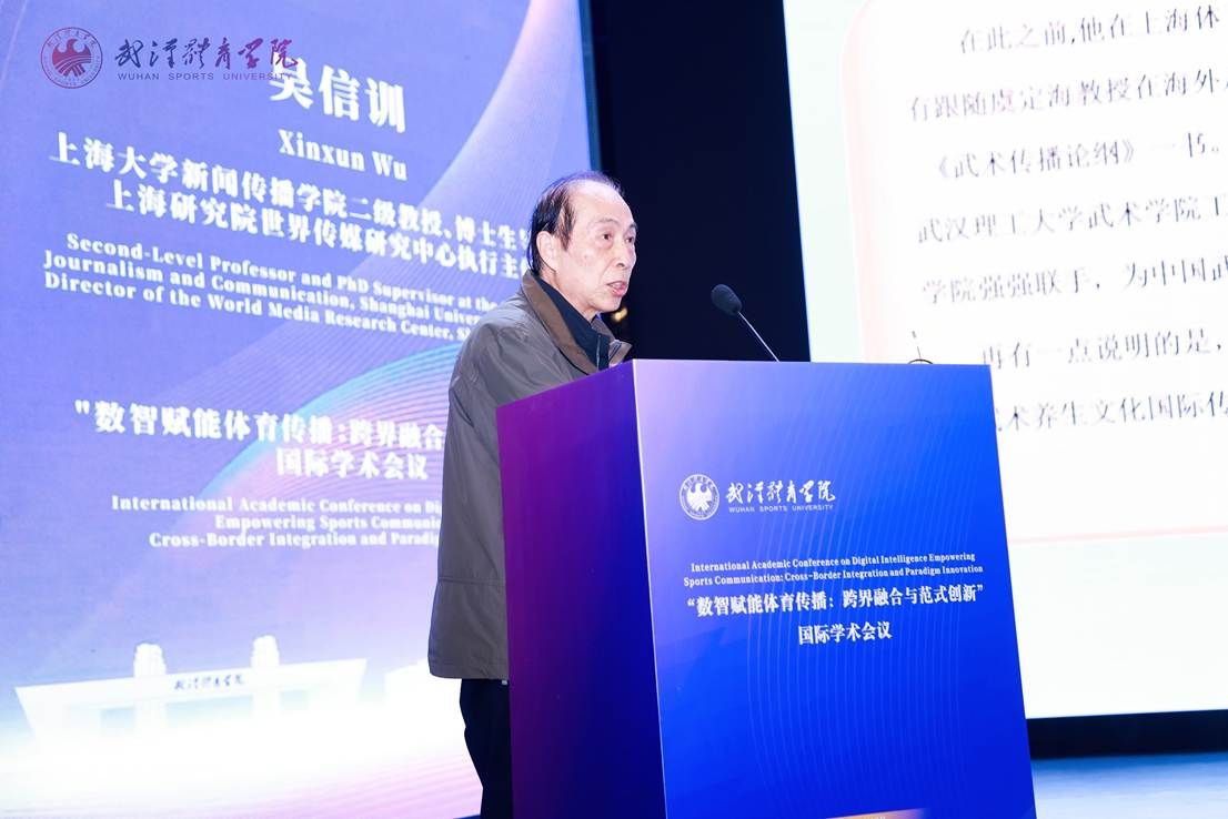 上海大学新闻传播学院二级教授、博士生导师吴信训以《数智赋能中国武术养生文化国际传播的思考》为题,认为数智技术为中国武术养生文化国际传播开辟了新路径,通过数字化呈现、精准化传播打破文化壁垒,让传统养生智慧更易被全球受众接受,为文化出海注入持久动力。