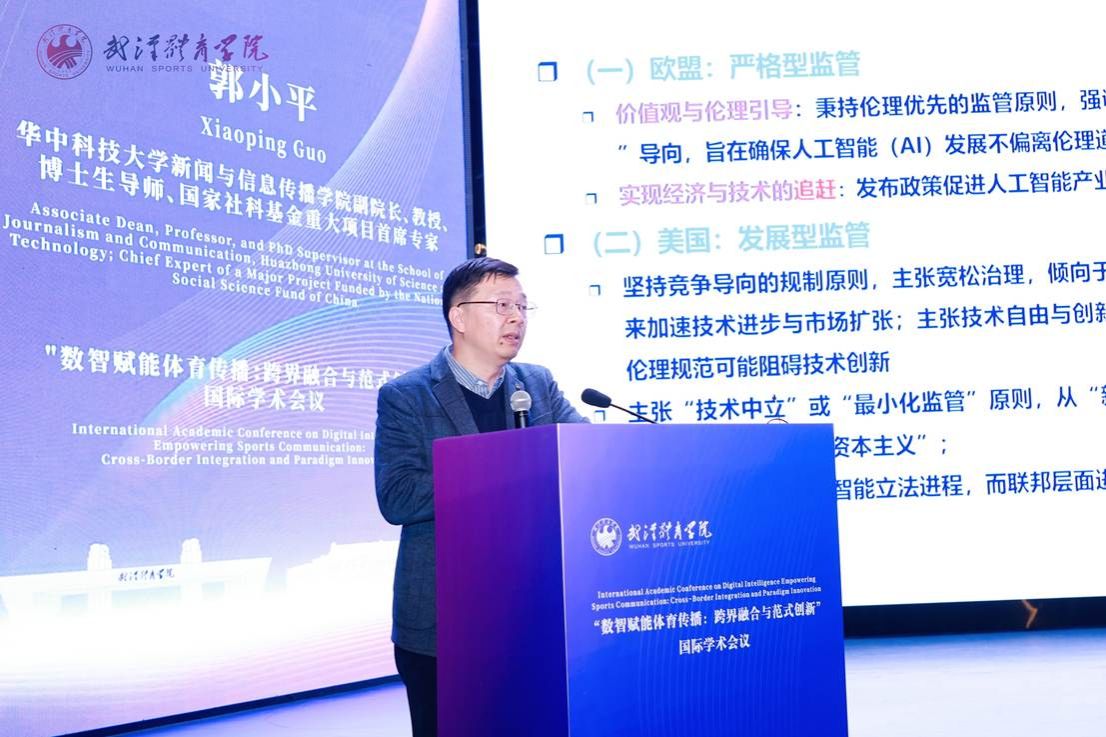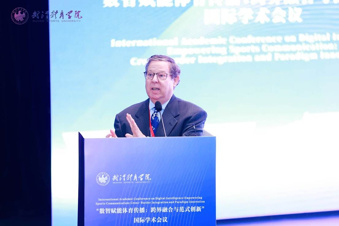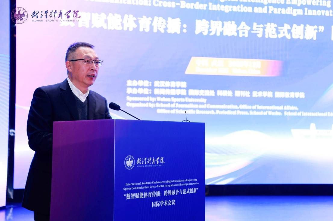 12月6日,聚焦数智时代体育传播变革的“数智赋能体育传播:跨界融合与范式创新”国际学术会议在武汉体育学院盛大开幕。前美国国家新闻俱乐部主席、赫斯特媒介集团华盛顿分社社长、清华大学全球财经新闻项目联合主任Rick Dunham,国际传播协会(ICA)体育兴趣小组国际联络人、德国传媒应用技术大学教授Thomas Horky,斯坦福大学博士后、国家海外高层次青年人才、上海交通大学机械与动力工程学院教授Peter Bradley Shull,华中农业大学生命科学技术学院埃及籍教授Mohamed Frahat Foda,美国纽约州立大学传播系终身教授洪浚浩,香港城市大学讲席教授、ICA会士周树华以及来自中国人民大学、浙江大学、武汉大学、华中科技大学、山东大学等500余名专家学者,以及政府部门、科研机构、传媒行业及体育领域代表齐聚江城,以“主旨报告+圆桌论坛+青年学者论坛”的联动形式,共同探讨AI技术前沿与体育事业、传媒行业的深度融合与创新发展,为数智赋能体育传播事业提供理论洞见与实践参考。
