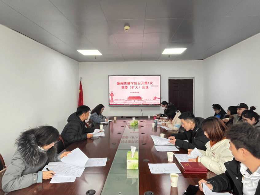 2月23日,新闻传播学院2023年第一次党委(扩大)会议在小球馆303会议室召开。学院党委班子成员、基层党支部书记及全体辅导员参加会议,会议由院党委书记叶涛主持。