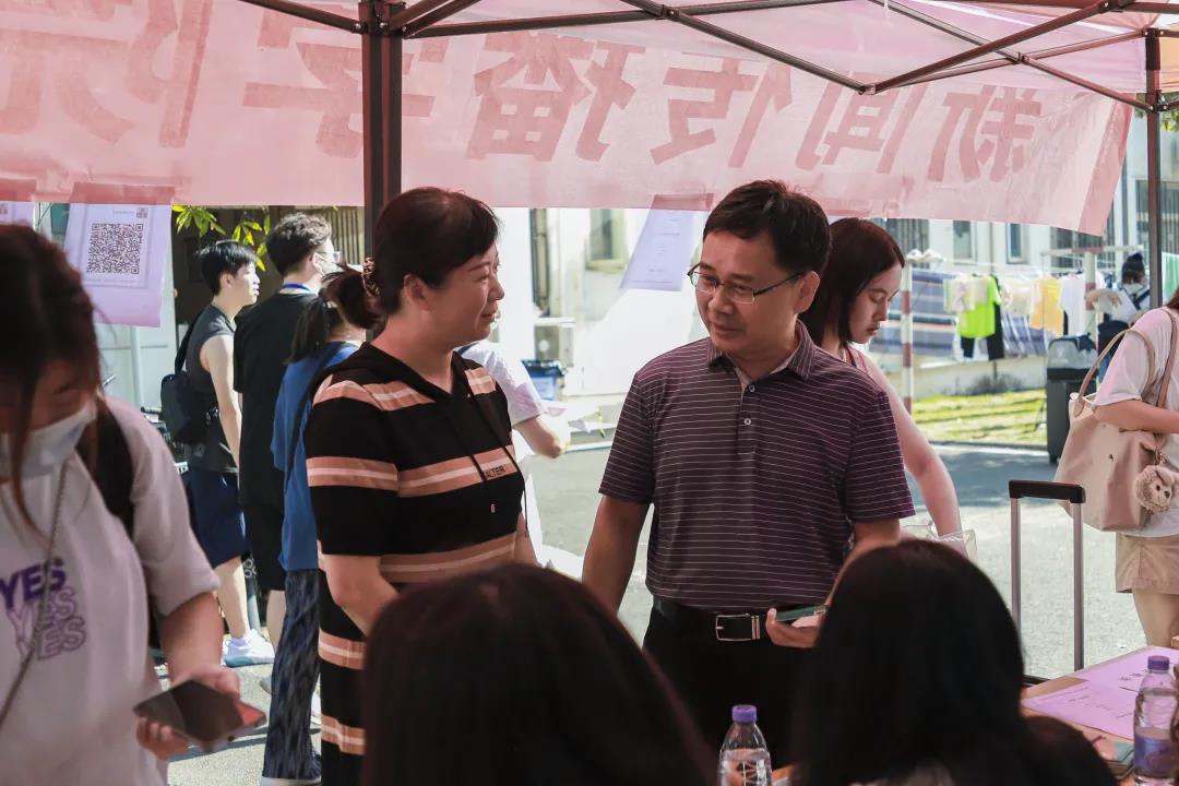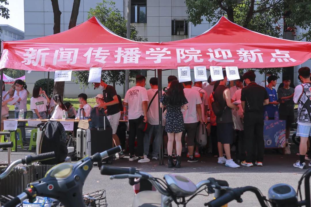 新闻传播学院院长张德胜、党委书记童铸、党委副书记赵露娜及各专业辅导员亲赴迎新现场,视察新生入学工作的进展情况。