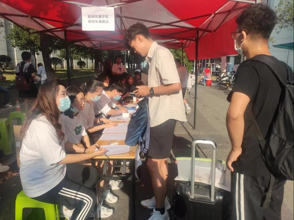 接过你的行囊,从此便是一家人。据了解,新闻传播学院2021级研究生共79人。截止9月11日上午10时,新传学院研究生迎新点已记录完成报道20人。“通过一上午的迎新工作,我与其他担任志愿者的同学们逐渐熟悉流程,适应接待节奏,成员之间也达成了较好地工作默契。我们有信心能够更好地推进接下来的迎新工作,确保万无一失,同时也让新生们感受到新传大家庭的温暖。”韩泽光说到。