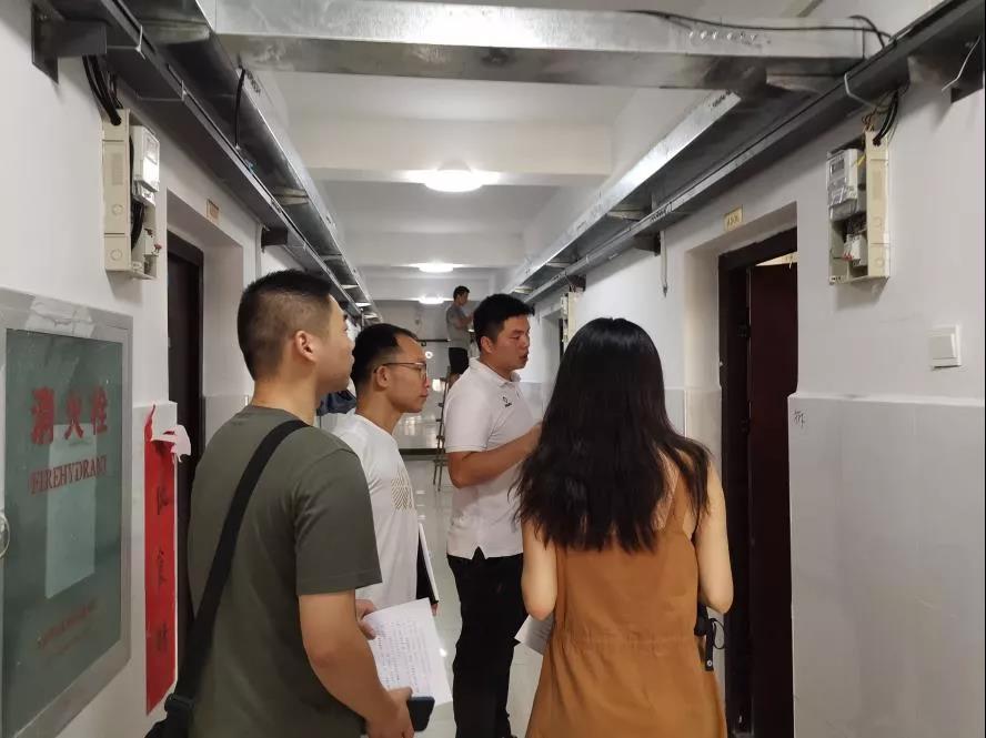 新闻传播学院研究生辅导员史明振提前带志愿者检查各宿舍物资是否齐全正常