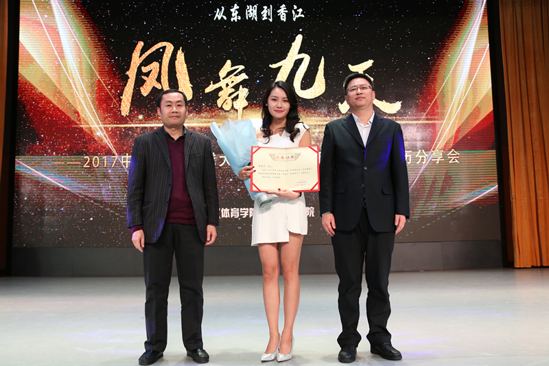 (学校党委副书记易三平、新闻学院党委书记夏方智为李明子颁发“武体学子”荣誉证书)
