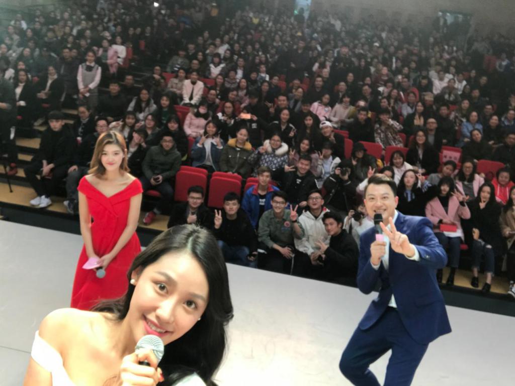 在最后的互动环节,现场观众踊跃举手,争先恐后地提出一个又一个问题,李明子均机智作答。分享会在李明子手执自拍杆与全场观众一起自拍的欢笑声中落幕。这台分享会由新闻学院播音系主任郝斌和李明子的同班同学、2017湖北省高校普通话大赛第一名陈希,联袂主持。