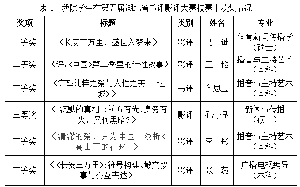 近日,为深入贯彻落实党的二十大精神,学习贯彻习近平文化思想,加快建设教育强国,加大国家通用语言文字推广力度,传承发展中华优秀传统文化,有力推动大学生读书行动,由校图书馆、学工部承办,以“典耀中华”为主题的第五届湖北省书评影评大赛校赛阶段在我校顺利开展。我院学子在本次活动中表现突出,在12个获奖名额中占据6席。